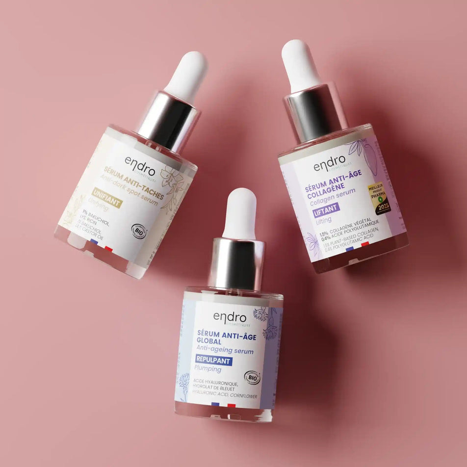 Le sérum anti-âge collagène vient en complément de notre sérum anti-âge actuel (pas en remplacement), il correspondra davantage aux problématiques des peaux matures et pourra être appliqué la nuit par exemple.
