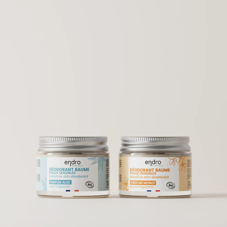 Ce duo de déodorants peaux sensibles est parfait si vous êtes à la recherche de déodorants qui n’irritent pas vos aisselles. Ces déodorants baumes sont formulés sans bicarbonate et sans huiles essentielles pour les peaux les plus sensibles. Pour autant, tous deux, sont aussi efficaces que des déodorants formulés avec. Vos aisselles sont garanties sans mauvaises odeurs.