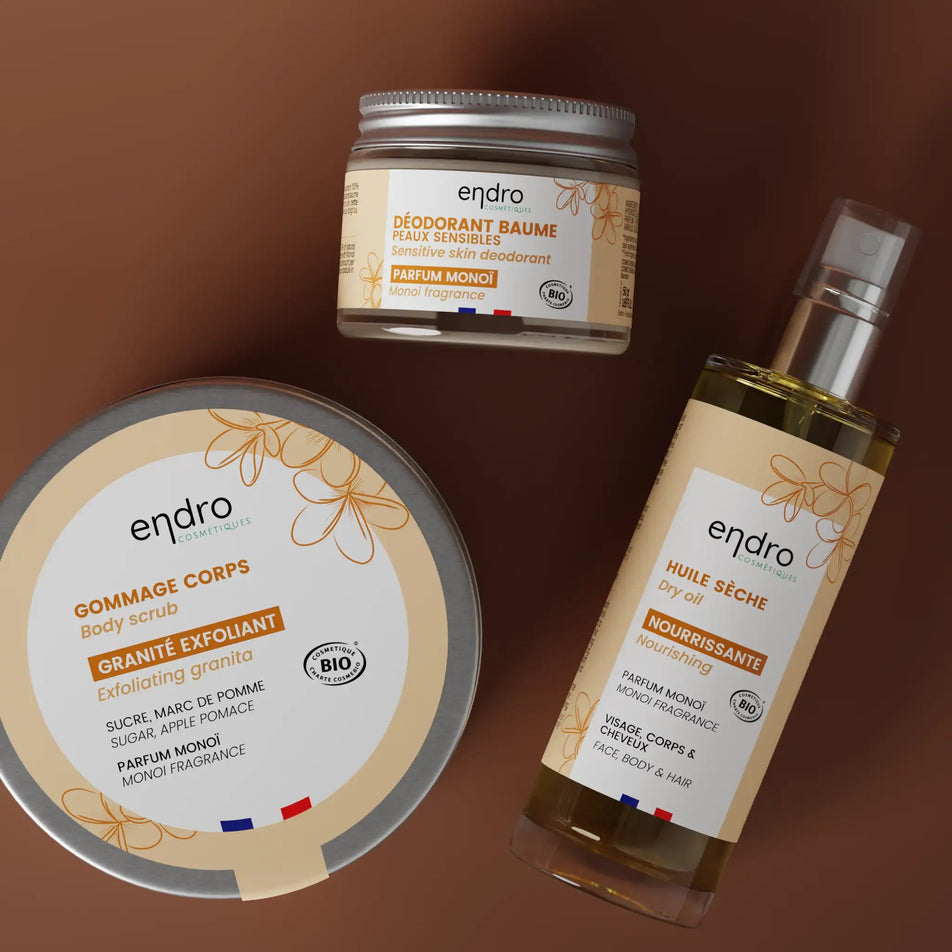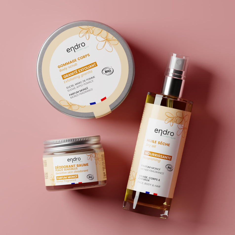Endro offre des produits fabriqués avec amour, certifiés 100% naturels et bio. Un choix conscient pour une peau en santé et une planète préservée.