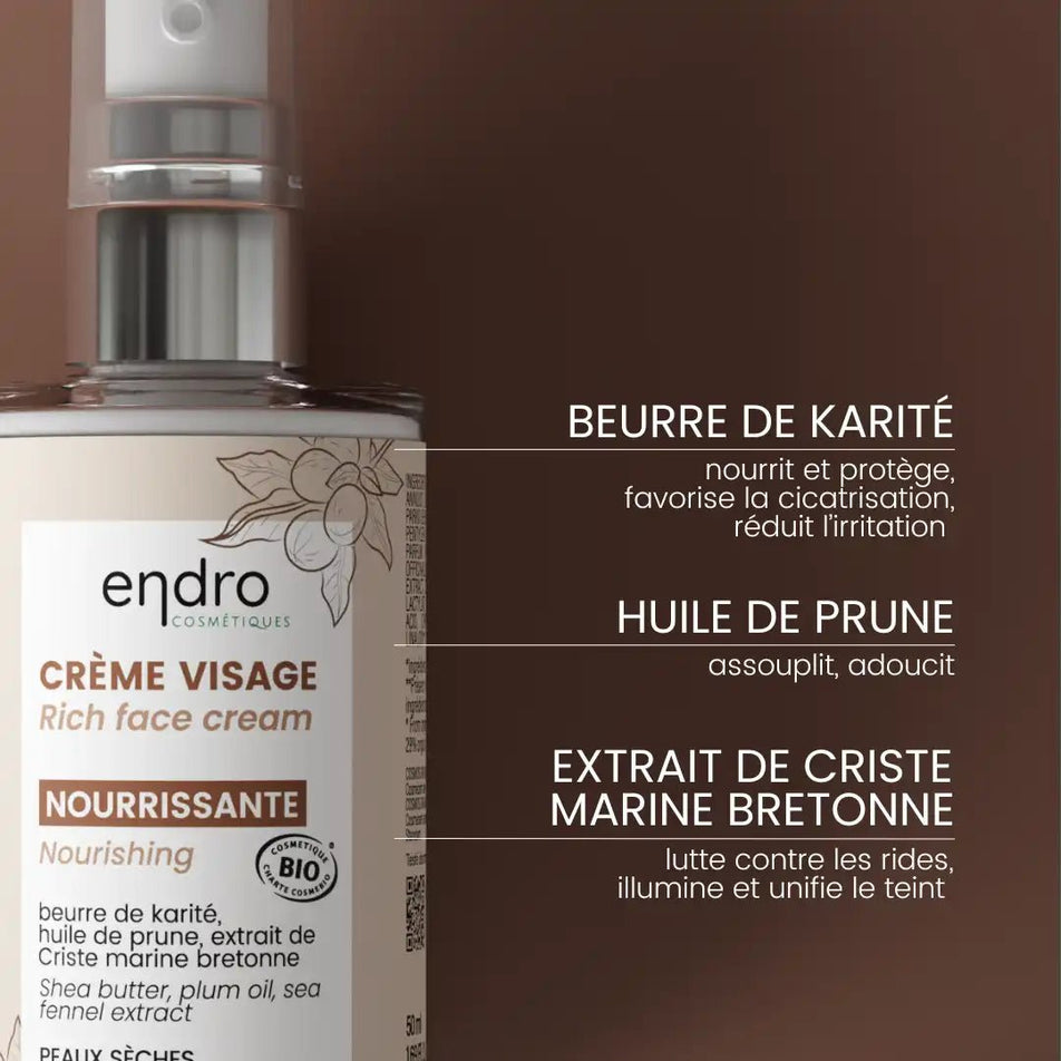 Découvrez cette crème nourrissante pour prendre soin de votre peau qui tiraille, qui rougit ou qui pèle facilement, surtout avec l'arrivée du froid. Elle est idéale pour les peaux sèches à très sèches. Nourrissante, elle contient du beurre de karité, de l'huile de prune, du macérat huileux de calendula et est enrichie en extrait de criste marine. Elle ne laisse pas d'effet collant sur la peau et vous apporte une sensation de peau "confortable". Vous pouvez l'utiliser en complément de notre huile lactée démaquillante, de notre huile sèche 3-en-1 parfum monoï et de notre baume à lèvres agrumes : voir la routine peaux sèches.