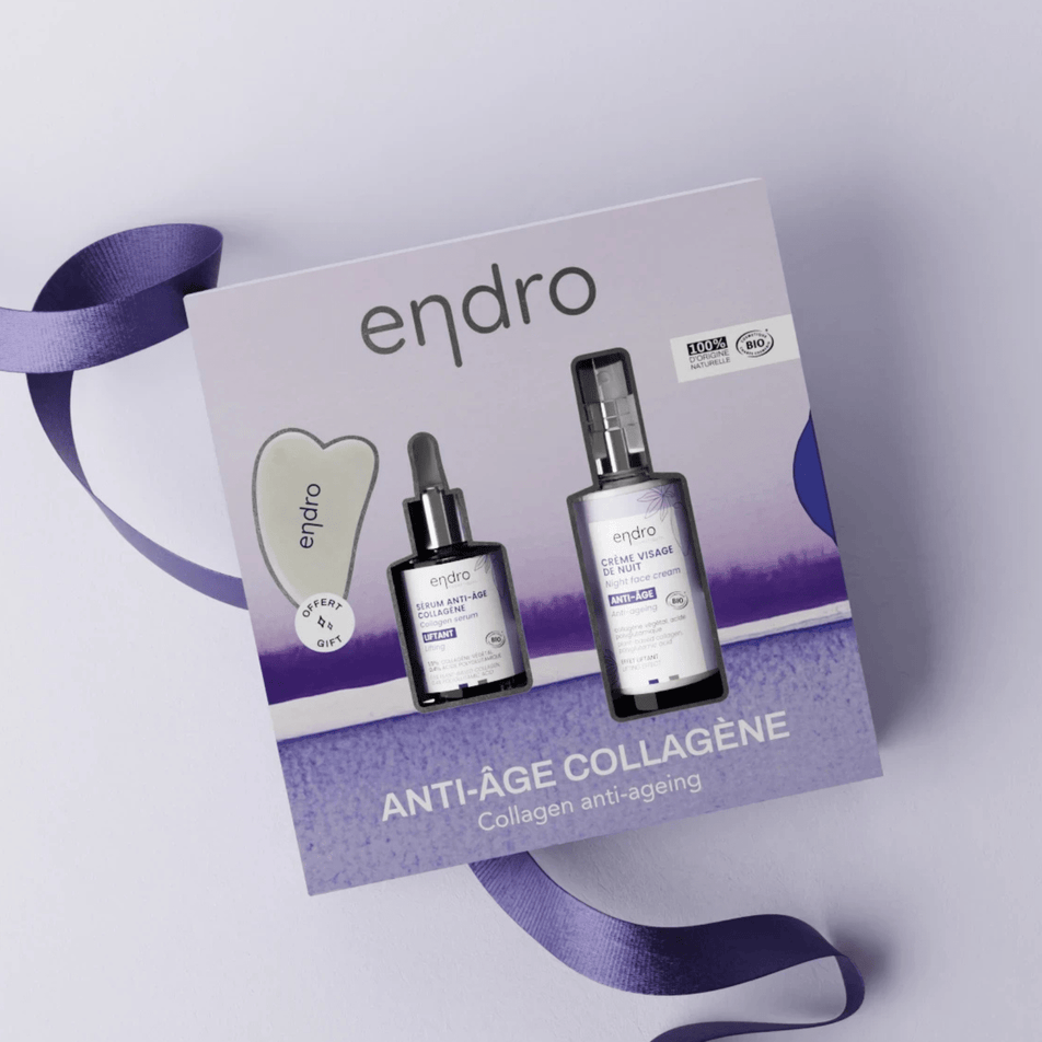 Ce coffret de fin d'année au collagène végétal est l'opportunité idéale de découvrir l'efficacité de la routine anti-âge de nuit Endro. Une solution complète et innovante pour combattre les signes de l'âge et retrouver une peau éclatante de jeunesse. Ce coffret contient trois produits essentiels formulés à base de collagène végétal, spécialement conçus pour hydrater, raffermir et revitaliser la peau en profondeur. En plus, un gua sha, est offert ! 🎁